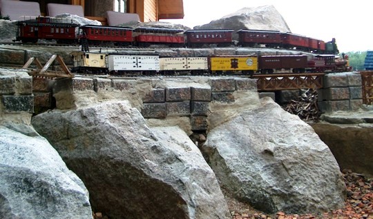 My trains max out at 11 to 12 feet in length due to a 3% grade on a