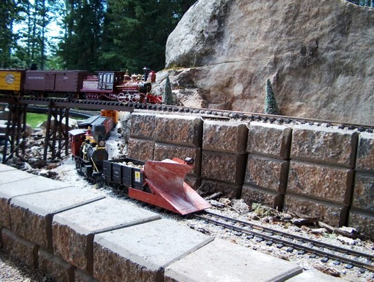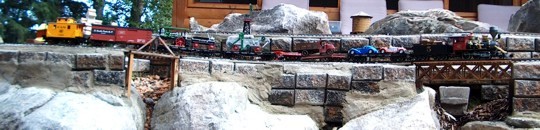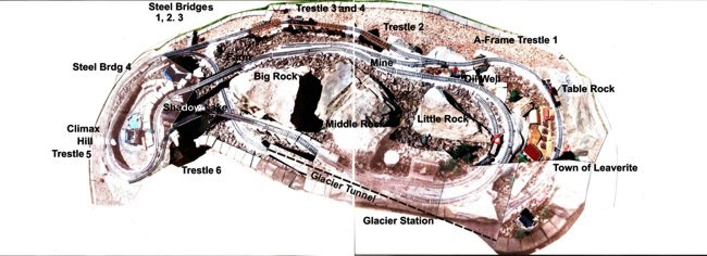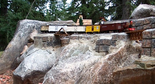 mainline laid out as a folded dog-bone. The large rocks hide the