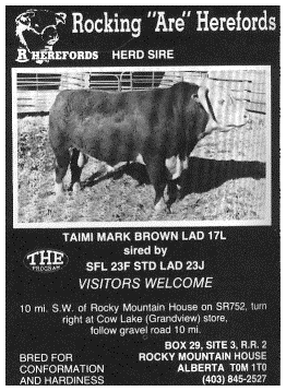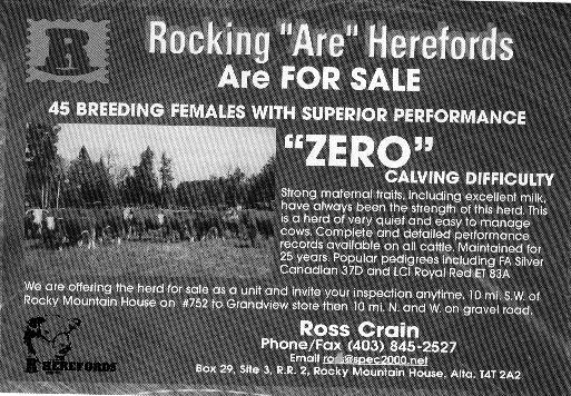 It became known as "Rocking Are Herefords", a ranch I built from scratch in the wilderness of west central Alberta southwest of a town called Rocky Mountain House. I lived there from 1977 through to the fall of 2017, when my failing eyesight forced me to consider a more secure setting in a condo on the west edge of Calgary. The ranch was rented on a lease to purchase option in 2018 and the sale was completed in 2021. The cows are gone - it is now a horse operation, where unwanted horses find loving care until new homes are found for them.