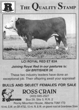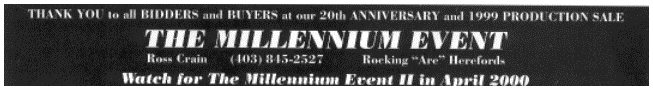 In 2005, the heart of our herd was sold to the Bohnet family of High River and the younger bred cows were dispersed through Innisfail Auction. The bred heifers, yearling bulls, and 2-year old bulls were sold in 2006. Until 2016, we ran grassers in the summer and leased some grass to keep the pastures in good condition. Failing eyesight forced me off the ranch in 2017.