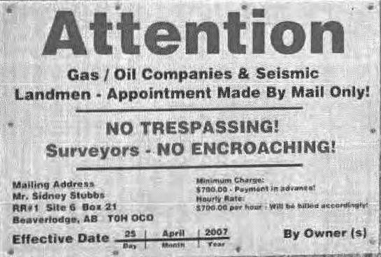Sign at a property near Grande Prairie, Alberta, reprinted from CAPL Course Notes. CAPL thinks it's funny!