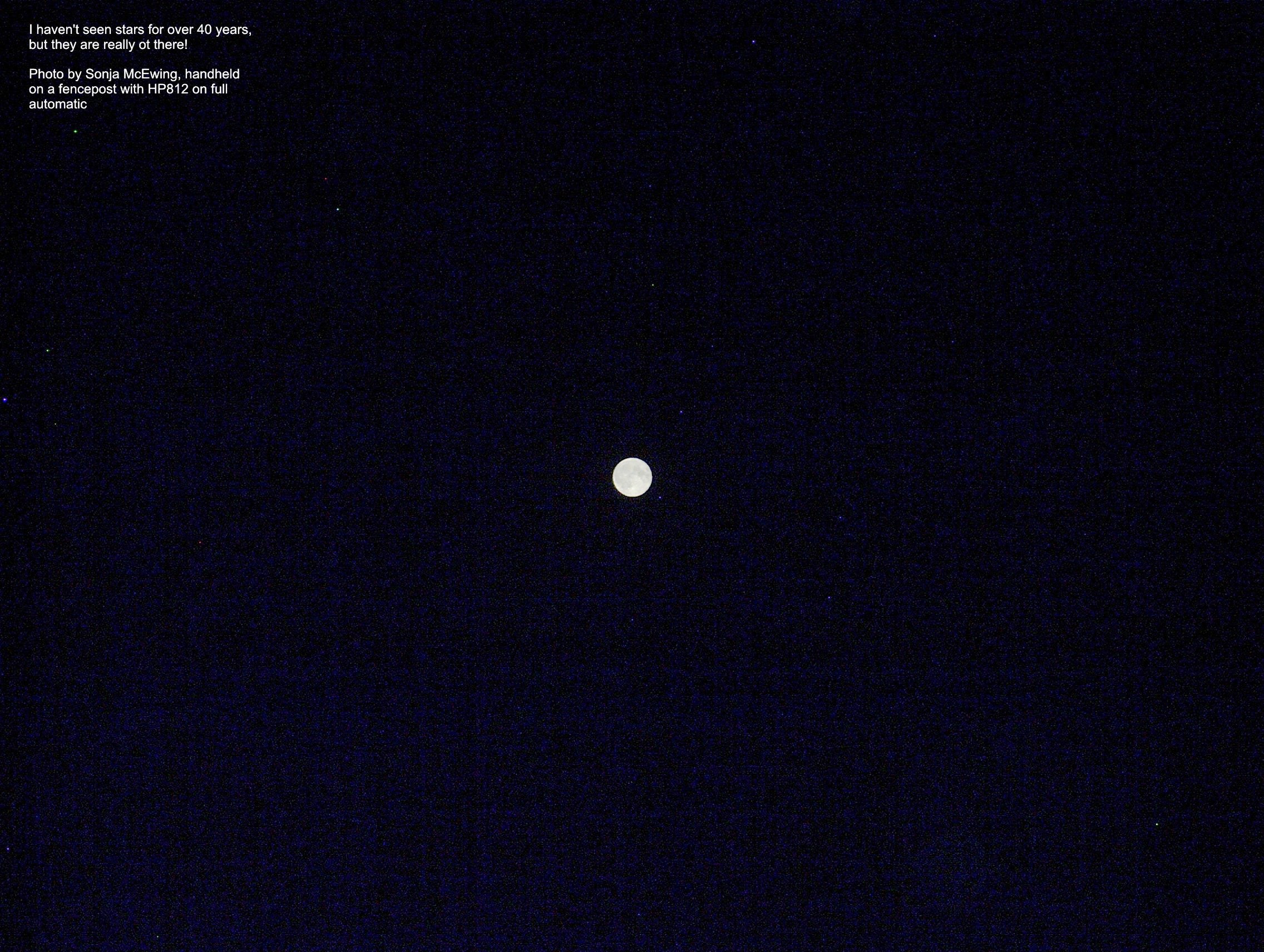 Click here to see photo showing craters and stars from handheld shot (1.6 Mb)