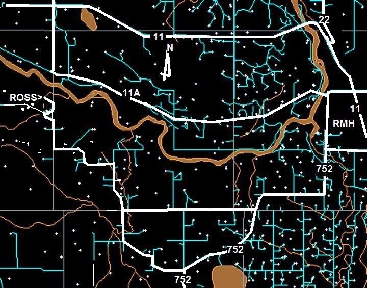 Road Map from Rocky Mountain House (RMH) to Rocking "Are" Ranch (Ross).