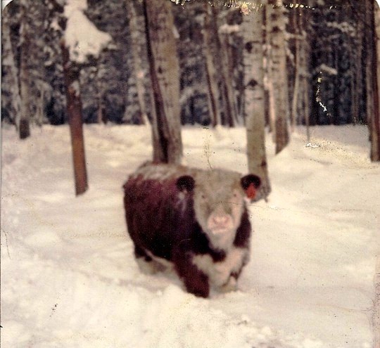 In fall 1979, six bred heifers and a herd bull (Horned Herefords) arrived. Using self-study courses from Guelph University and an extension course at Olds College, I quickly learned the basics of animal husbandry, with considerable help from our local vets, Tom and Martha Kostuck.