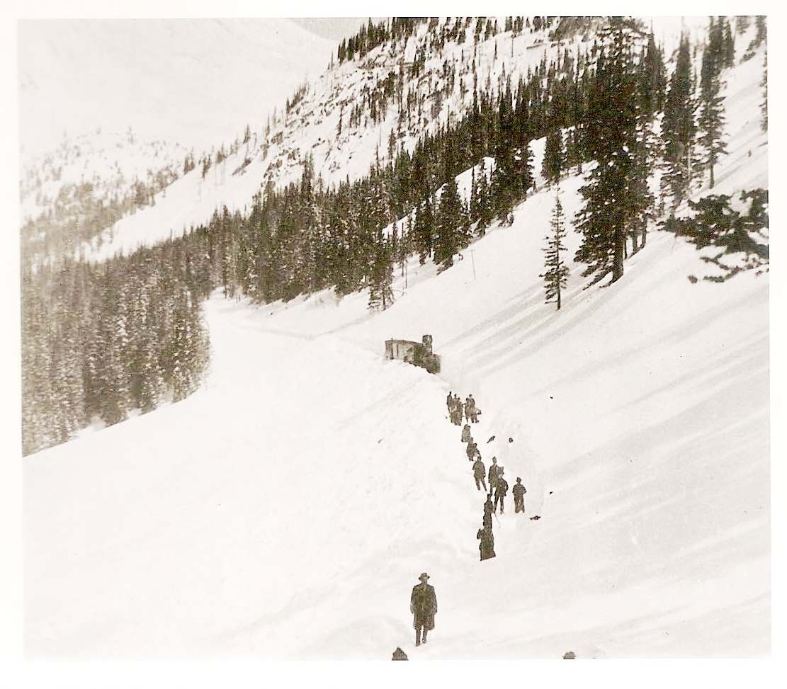 Jull Snow Excavator in April 1890, near Hancock on the DSP&P mainline to Alpine Tunnel, with four pusher locomotives,