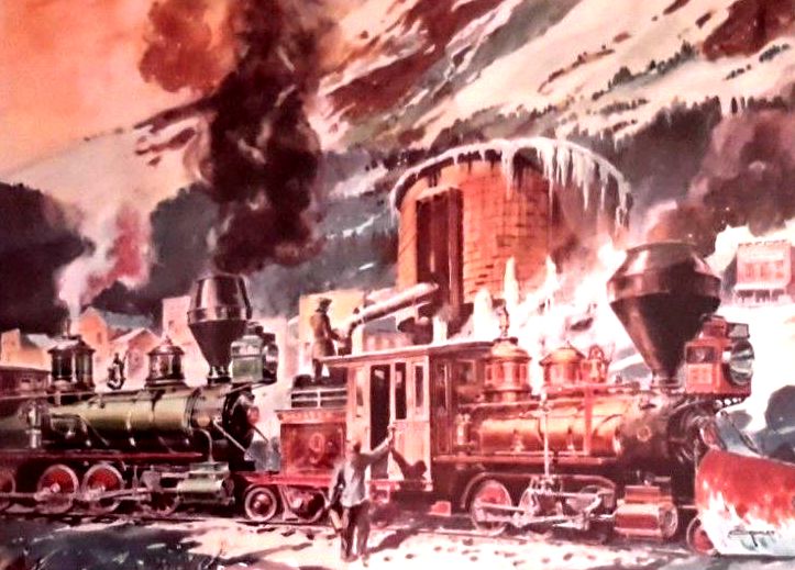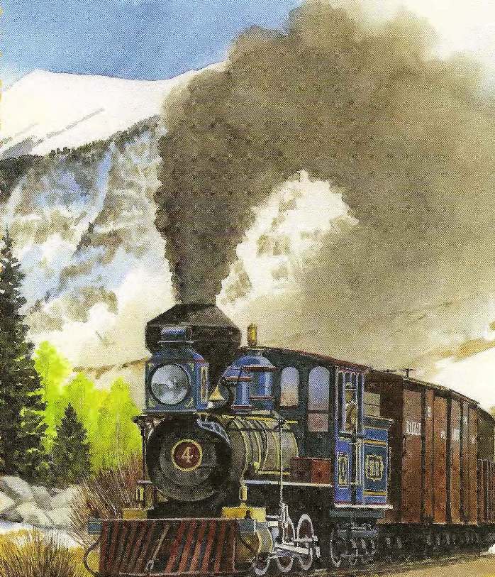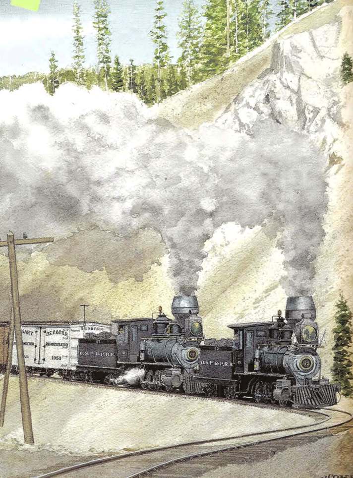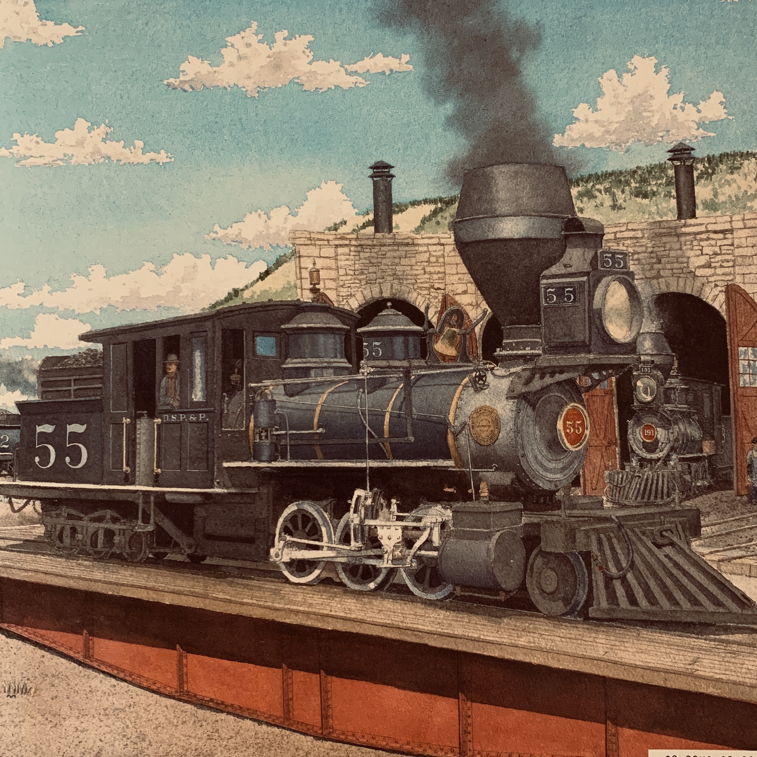 "Alpine Enginehouse" by Philip Ronfor shows DSP&P #191 at work. The nicely restored original locomotive is at the Colorado Railroad Museum in Golden CO.