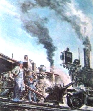 "Water Stop at Hancock" Pen and Ink by Otto Kuhler