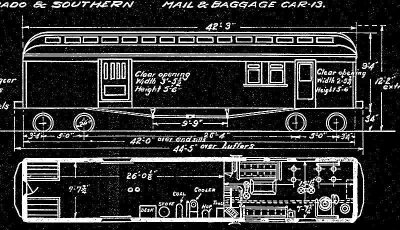 y the South Park’s Denver Shops. Similar to baggage cars #40 and #41, it probably had four windows, two on each side of the baggage door. One window location was modified to create a mail door similar to the center door of the baggage cars. In later years, under C&S ownership, windows were sheathed over, and later still the end platforms were removed.