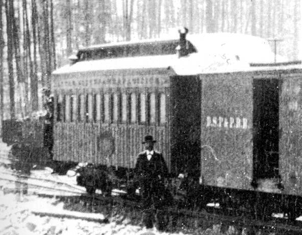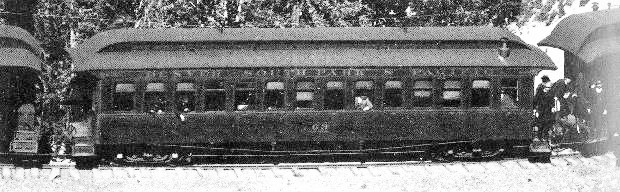 Coaches #18 through 21 were 1880 Pullman products, 42 feet over end sills, with 15 windows and large observation windows on both end walls. These were sheathed over by 1885. Baggage-RPO cars #43 and 44 were part of the same order from Pullman.
