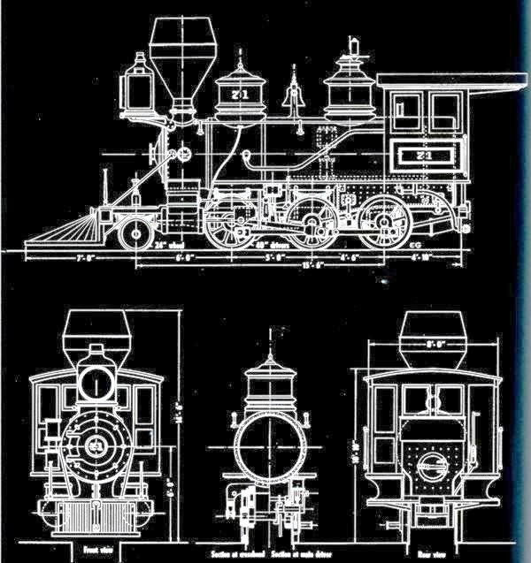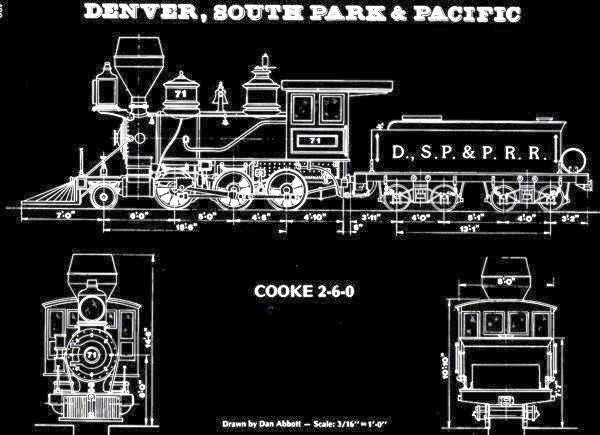 CAD drawings of DSP&P 2-6-0 Cooke Mogul #71 from "Model Railroader" Dec 1998.