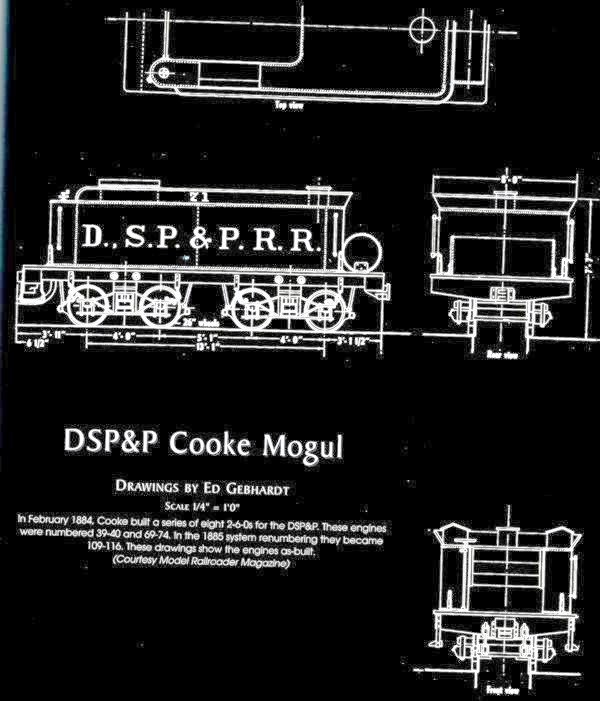 This page covers the 8 DSP&P 2-6-0 Mogul locomotives acquired from Cooke. DSP&P also owned nine 2-8-0 Consolidations from Cooke.