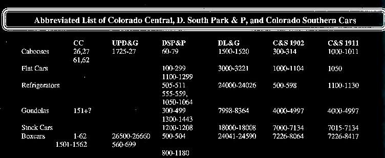 Extract from "Narrow Gauge Pictorial" Volumes VIII. List below includes cars from Colorado Central.