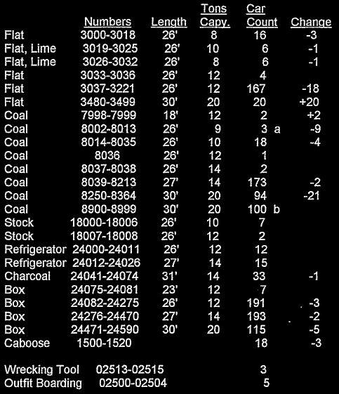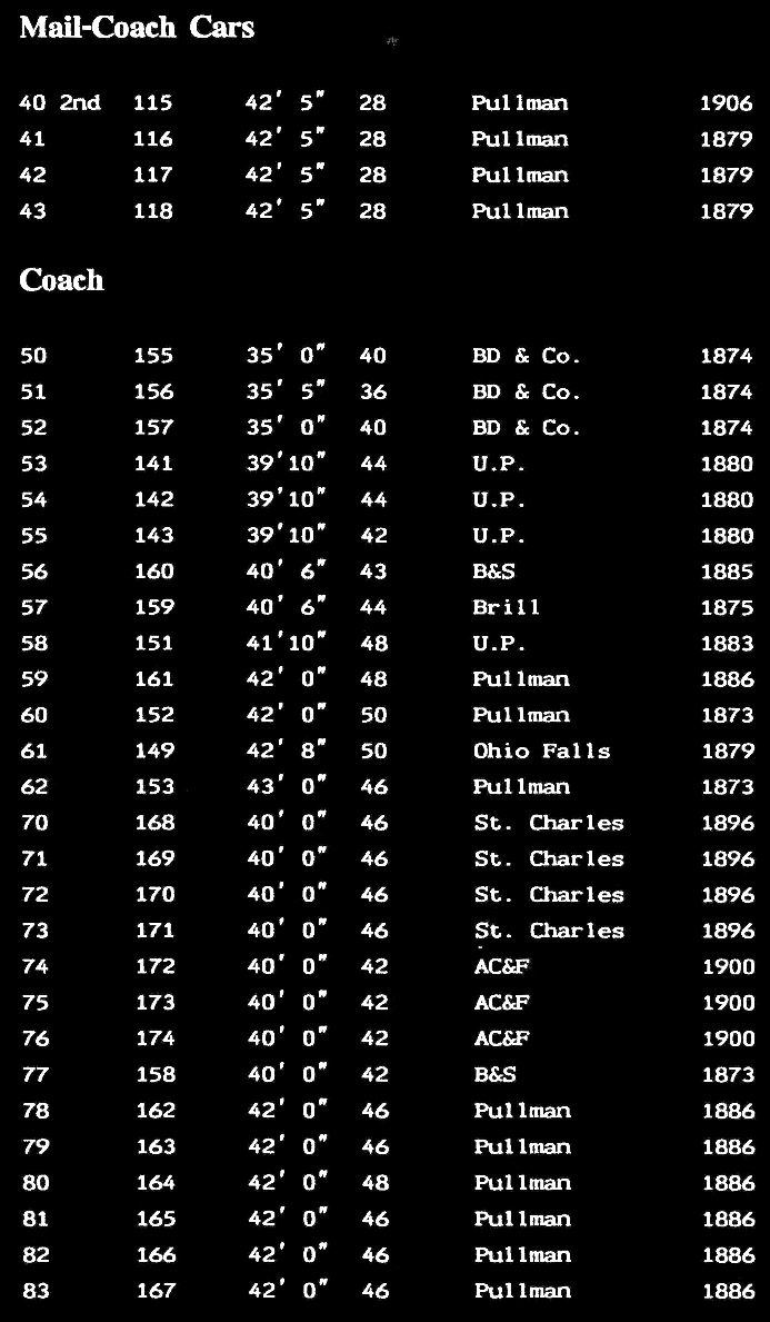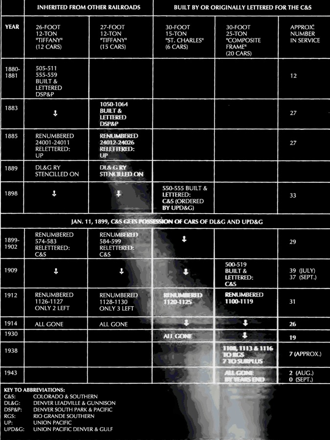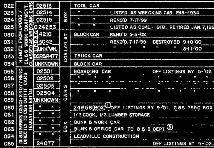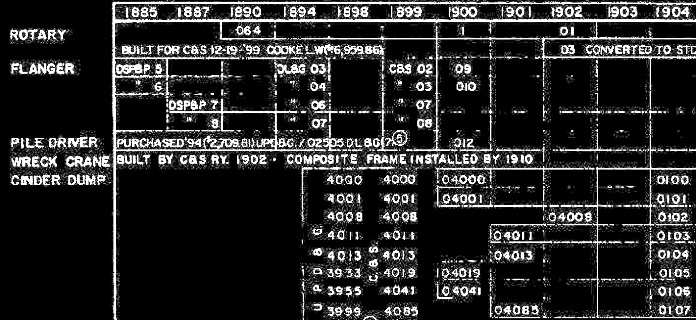 Below is my simplified roster that can be used to put appropriate car numbers on commercial, kit-bashed,  or scratchbuilt models, as well as to see the evolution of the rolling stock up to the C&S takeover.