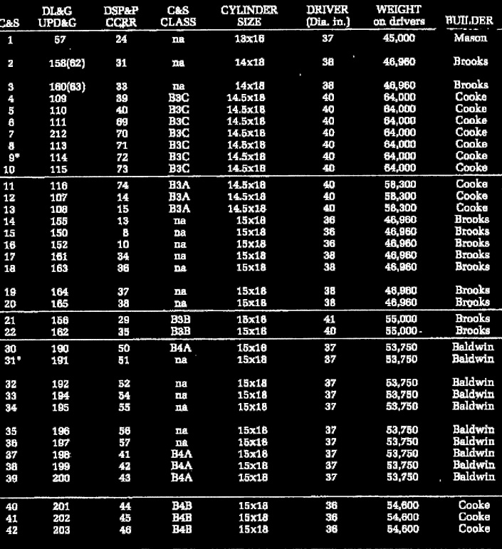 Utah Rails' DSP&P Locomotive Roster. There are minor differences between this roster and the Eherkberger and Grandt rosters, in particular as to whether DSP&P #24 and # 33 entered the C&S roster in 1899.