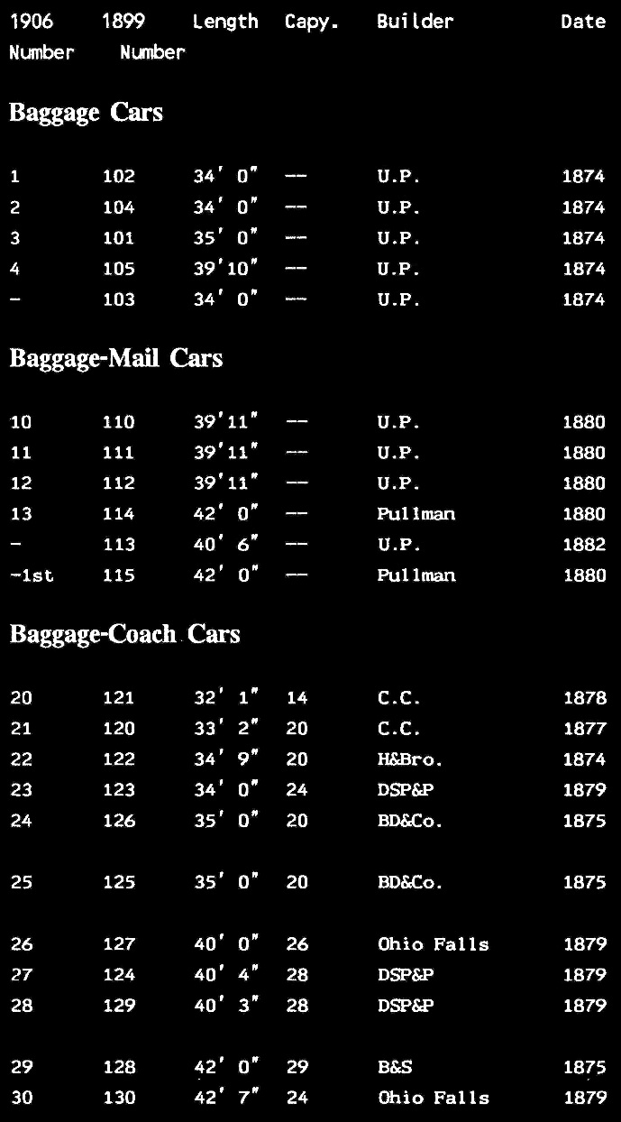 DSP&P RR PASSENGER CARS   1874 - 1906