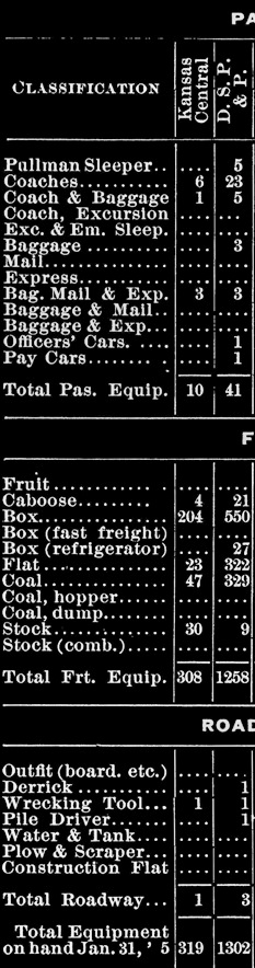 DSP&P RR LOCOMOTIVES   1874 - 1899