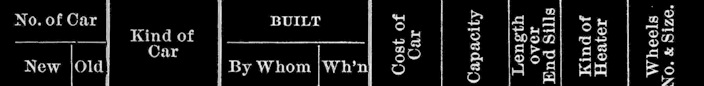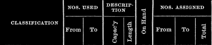 ORIG # TYPE 1885, 1899. 1906 LENGTH MFG BUILT