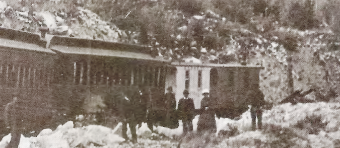 DSP&P work train in 1881 with dark coloured waycar at the rear.