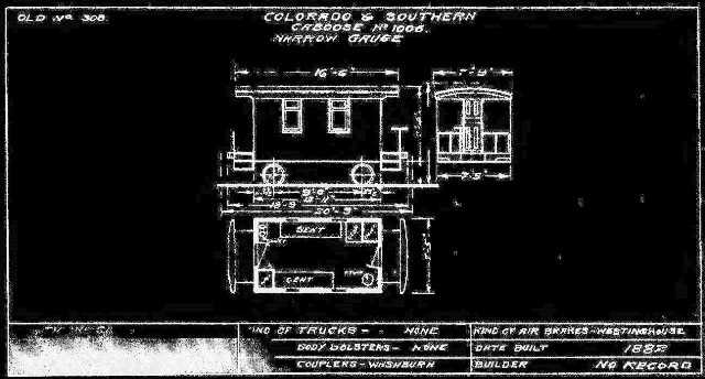 Colorado Central also contributed waycars to the C&S, CC #1725 and 1726 became UPD&G #61 and 62 in 1897. #63 was built and the three became C&S #300, 301, and 302 in 1899-1900. The first two survived to 1912 and became C&S #1000 and 1001.