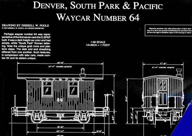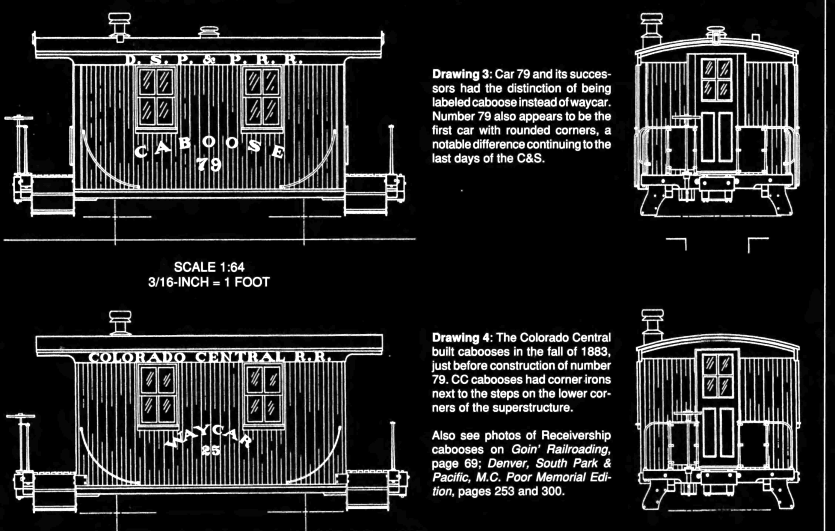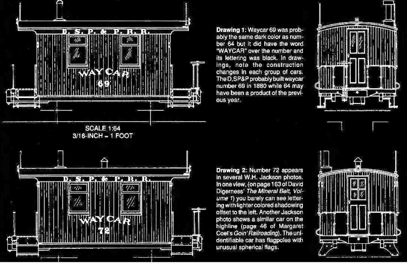 Below is my simplified roster of DSP&P waycars, based on Robert Grandt's Roster Lists from Narrow Gauge Pictorial Volume VIII. Since many of C&S cabooses are well documented, you can use some dimensions and details to work backward to specific DSP&P waycars. Build dates are approximations and various sources disagree with each other.