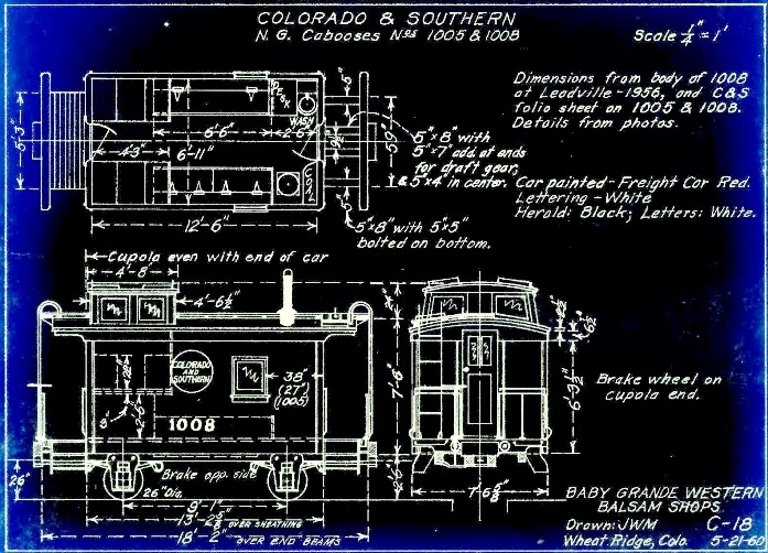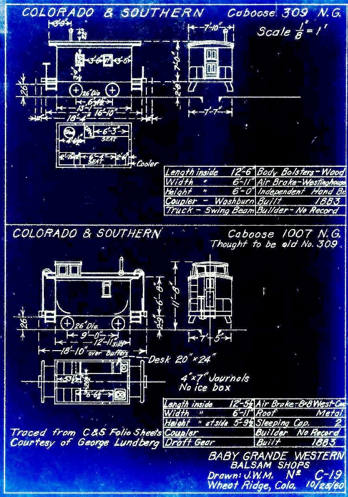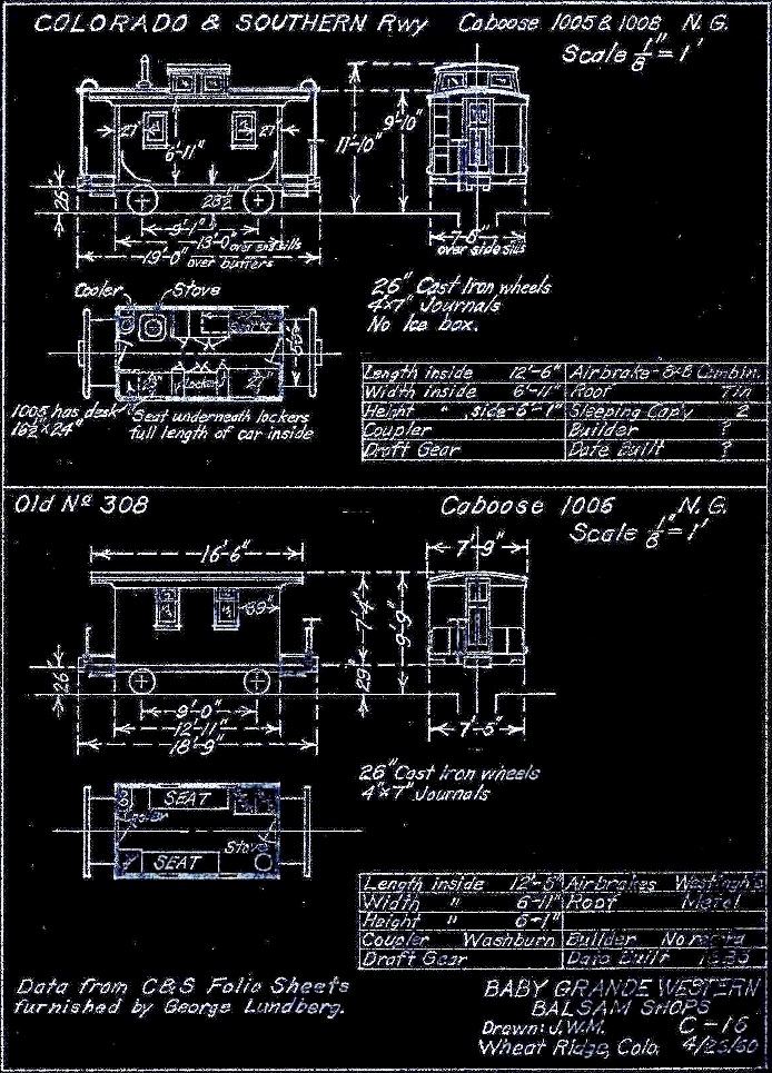 C&S Cabooses 1005 (307), 1008 (310), 1006 (308), 1007 (309)