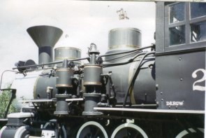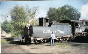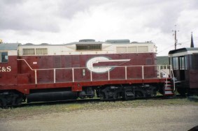 Prior to 2005, the railway had 3 Shays, numbers 8, 12, and 14 which hauled most of the trains. These are ex West Side Lumber Company locos. There were two rod locos, numbers 40 and 44 built by Baldwin, also not original C&S equipment. Two 54 ton GM diesels from US Gypsum arrived in 1994. My photos show the white and blue livery of 1994 as well as the 2004 black and orange paint job. The diesels were used only if a steamer died or needed help to get home.