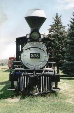 At Gunnison, visit the Gunnison Pioneer Museum on the highway. Here D&RGW #268 in Bumblebee livery sits under a replica snow shed to protect it a bit from the weather. My 1994 photos show the engine in black and silver before the fake smokestack was removed. Various freight and MOW cars, including flanges OF and OD, with long caboose #0589 are tagged to #268.