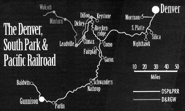 The DSP&P route was Denver -- Como -- Boreas Pass -- Breckenridge -- Freemont Pass -- Leadville, crossing the Continental Divide twice. The D&RG route to Leadville was more than 275 miles from Denver; the DSP&P was only 150, but the steep terrain meant that trains were only marginally faster in arriving at the Cloud City.