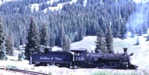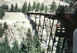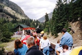 My photo essay on the Colorado Narrow Gauge Circle is based on two trips, the first in 1994, the second in 2004. Both were post-convention trips sponsored by the Denver Garden Railway Society. The 1994 trip was the better of the two – the weather cooperated, the tour was more leisurely, the guide knew the route intimately, and got us to places that we never saw on the 2004 tour.