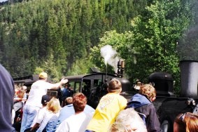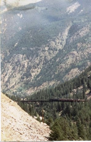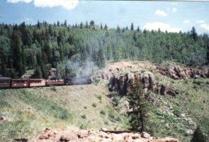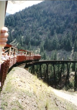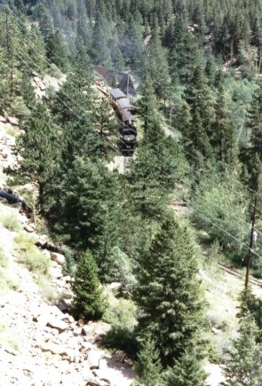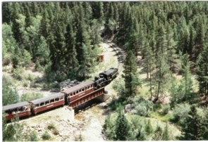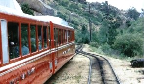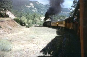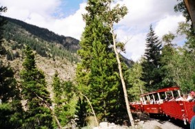 The train has a vintage diesel at both ends and, believe it or not, is controlled by Santa Fe RR CTC in Omaha. The ride is out and back in about 2 hours. You have to use your imagination a bit to visualize what this trip must have been like in the early days of the narrow gauge.
