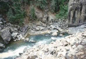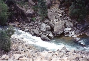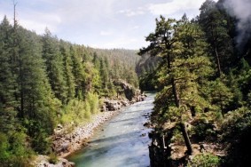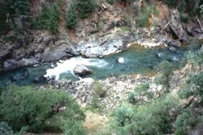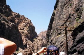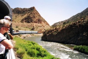 Some cars have the roof and sides cut off between the undisturbed vestibules to make open-air excursion cars. You can touch the rock walls of the canyon if you are dumb enough to want to do so. Watch for white-water rafters on the river. A Vista Dome and a parlour car, Sunshine Falls, have been added to the roster since my 2004 trip.