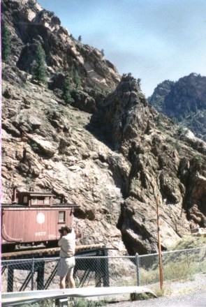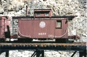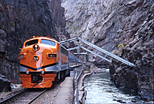 The last D&RGW passenger train through the Gorge was run in 1967. The Royal Gorge Route Railroad opened for passenger traffic in 1999. It departs from Cañon City (southwest of Colorado Springs) and is strictly a tourist attraction on standard gauge, using ex Canadian VIA Rail passenger cars still sporting their original CN roster numbers.