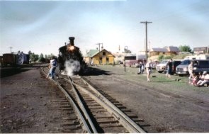 It is ironic that turn-of-the-century narrow gauge steam engines heralded the atomic age, only to be smitten by the internal combustion engine and pavement. Photos below are from 1994 unless otherwise noted.