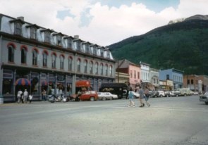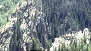 The trip to Silverton and return takes 8 hours, counting 2 hours for lunch and shopping at Silverton. Following Rio de las Animas Perdidas ( River of Lost Souls), the track rises slowly until it is more than 600 feet above the river – the famous “High Line” that hugs the edge of the mountains. Photos from the train only hint at the feeling of great depth just feet from the train windows. Silverton has many historic buildings, but nearly all are souvenir shops or fast food outlets – not the authentic historic townsite that one might have hoped for.