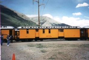 Volunteers from the Friends of the C&TS provide maintenance and fund raising. C&TS has rebuilt a number of D&RGW K-37’s for use on the line and has built its own excursion passenger cars on old standard gauge flat car frames. Lots of other MOW equipment is parked in the Chama Yard, including two rotary snow plows and the derrick car. Photos below are from 1994.