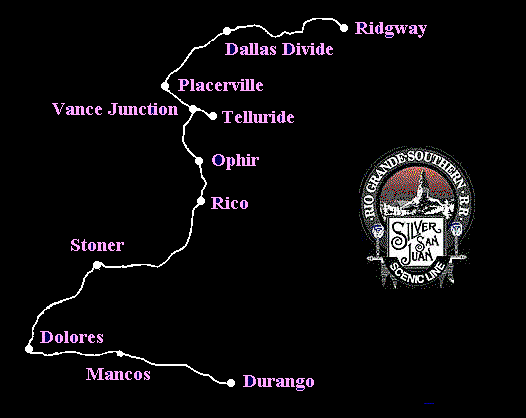 The Rio Grande Southern Railroad was built in 1890 by Otto Mears to connect mines at Telluride and Placerville with the D&RG at Durango and Ridgway. There are no operating tourist railways on the RGS route and all the tracks have disappeared.