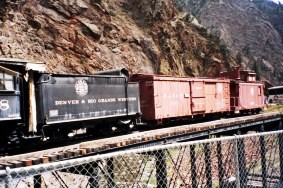 Highway US50 takes you along classic D&RGW country. The first stop east bound after Montrose is the Cimarron Canyon sheep loading exhibit maintained by the US National Forest Service. A static display of sheep loading facilities, two double deck sheep cars and a MOW camp car are easily accessible.