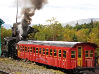 highest peak in Norteast USA, at 6288 feet (1916 m), located in New Hampshire, near Breton Woods. The summit is reached by the Mt. Washington Cog Railway, better known as "The Cog". Built in 1869 by Sylvester Marsh, it is the world's first cog railroad and it still runs one steam train per day, plus numerous bio-diesels in season. Europe's first cog railway came 2 years later at Mt Rigi.