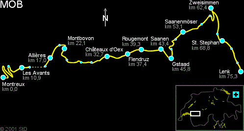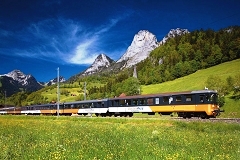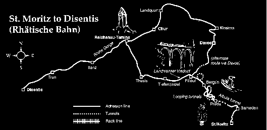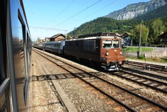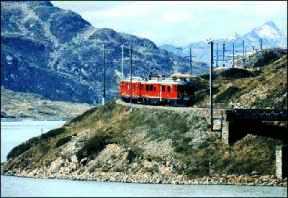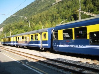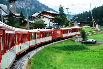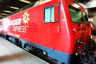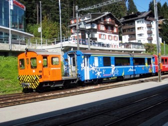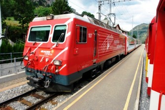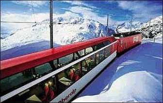 the Glacier Express runs from Zermatt to St. Moritz, using stock