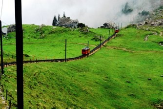 open-air cogwheel railway. The Jungfrau is higher but in a