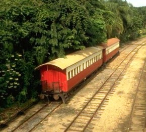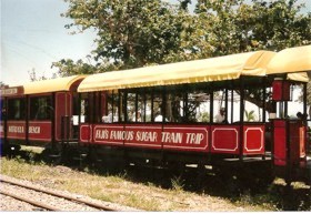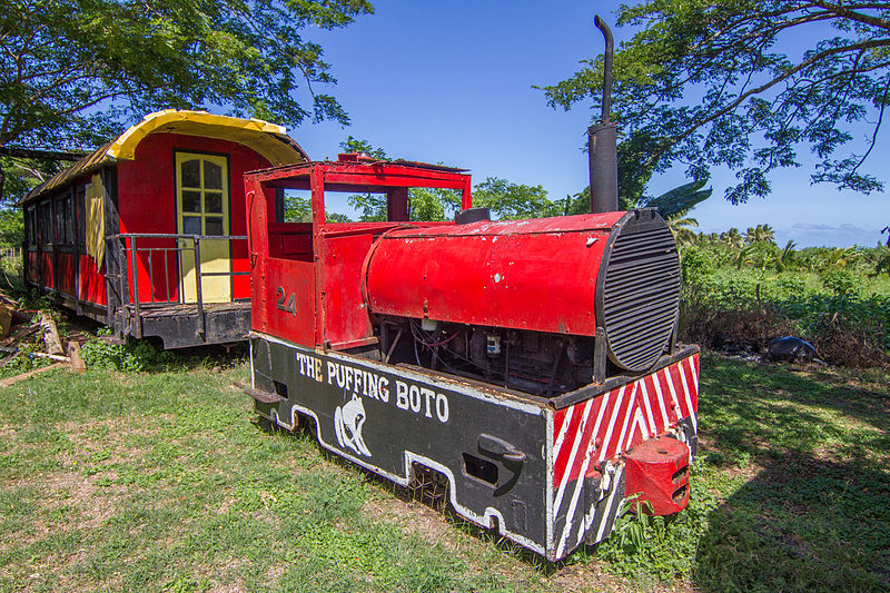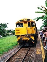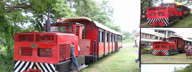 The island country of Fiji in the South Pacific Ocean creates memories of tropical Paradise that last a lifetime. In addition, Fiji has trains - not many and not fancy, but easily found by tourists. One is shown here from a vacation in 1993. The Sugar Cane Train operated by Coral Coast Railway runs from Sigatoka up to Natadola Beach. Nearest airport is Nadi, Fiji, about an hour north of Sigatoka.