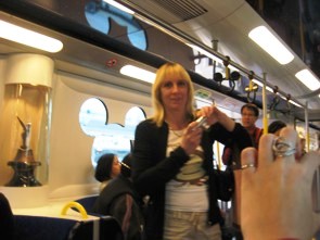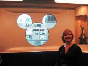 The MTR runs special dedicated trains to Disneyland from Sunny Bay Station. The windows are shaped as a profile of Mickey Mouse. There must be a word for something that is too cute for words. The station is also pure Disney.