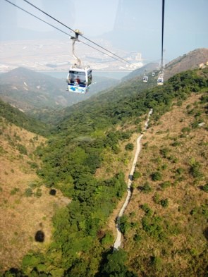 The cableway starts near the MTR Tung Chung Station and terminates near the Giant Buddha at Ngong Ping, a theme village especially built to exploit tourists. There are no intermediate stops. Cash fare or prepaid Octopus card.