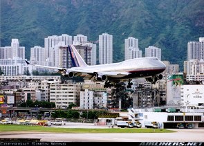 Kai Tak was notorious for its difficult approach and landing procedure while skirting the mountains and high rise buildings that had sprung up around the airport. It involved a descent to about 650 feet, (facing into a 1400 ft hill), then a 47 degree right turn that also dropped the plane to about 140 feet, hopefully leaving the plane lined up with the runway. Before 1975, this was done visually, later aided by ILS, but the eyes were still better.
