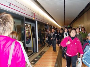 Station announcements are in Cantonese, Mandarin, and English, plus illuminated route maps over the doors, making it easy to get off at the right stop. The many routes seem complicated at first so a good map is essential at all times. Stations are huge with many exits. There are at least three flights of stairs and probably one or two escalator rides to get to your train. Turnstiles, not to mention the stairs, make large luggage a bad idea.